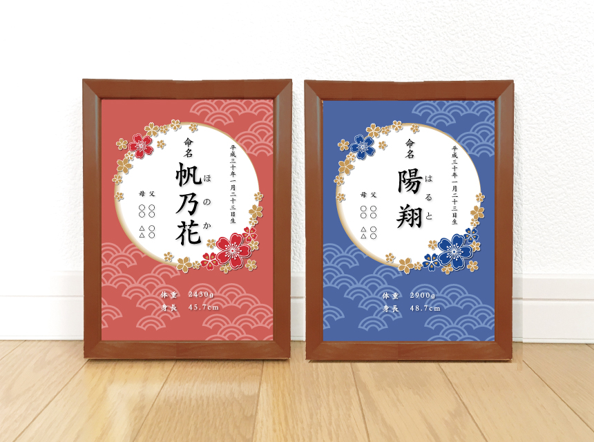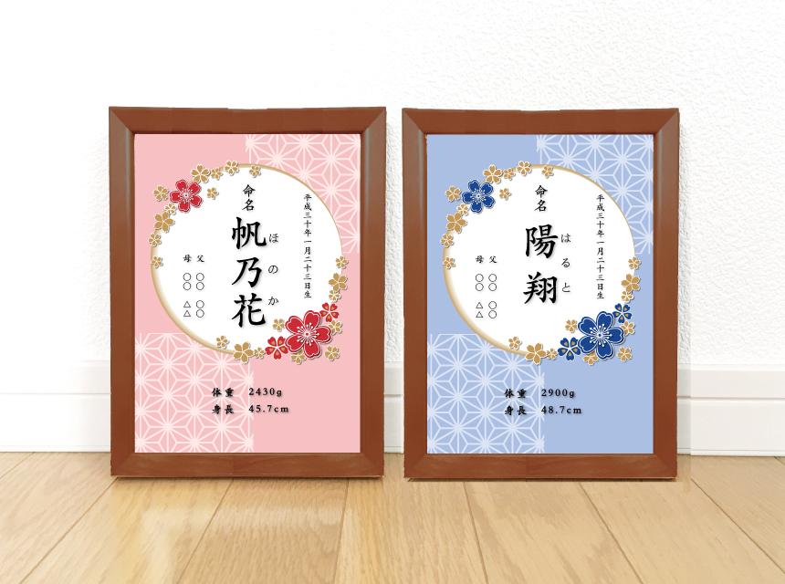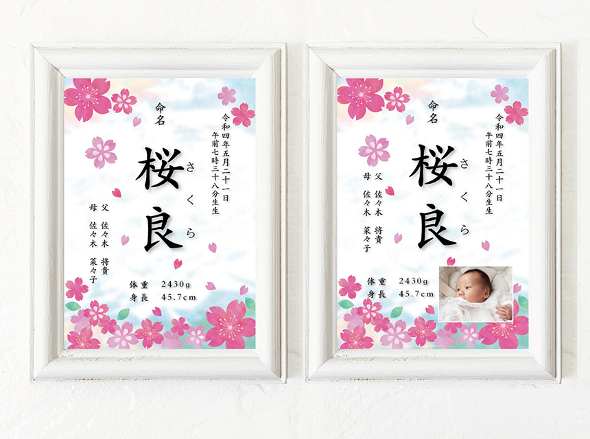 桜の花の季節の命名書ビビッドカラー