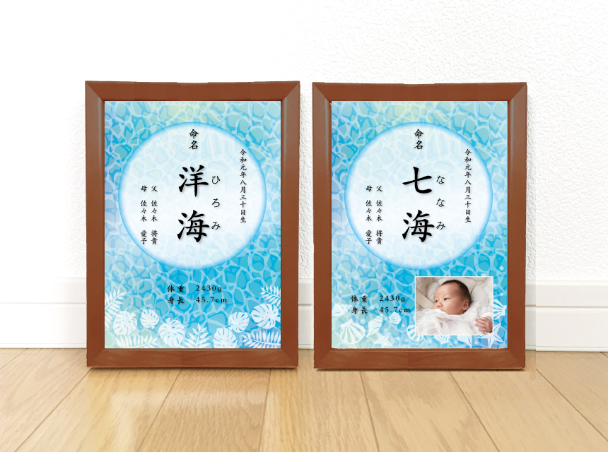 海の水面の命名書写真入りバースデーポスター